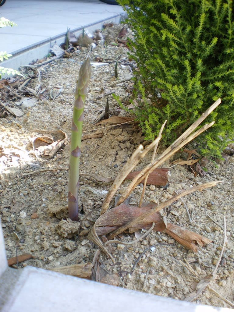 関係ないけど、花壇脇にアスパラが生えてきました。