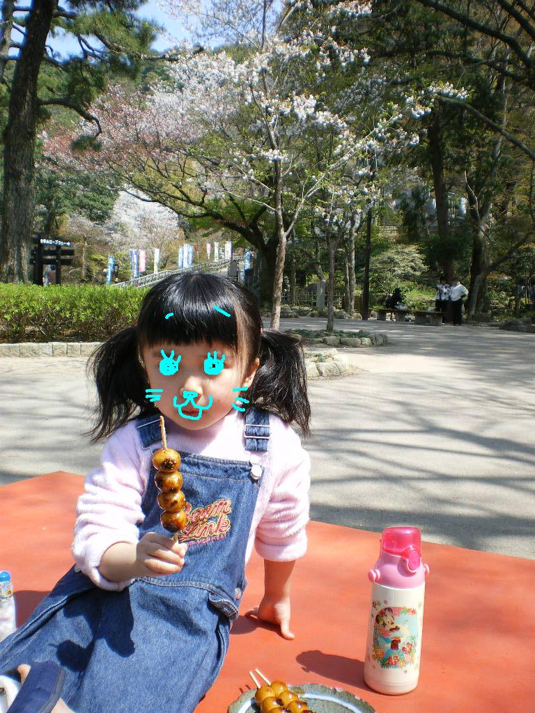 リスの後は、桜も満開の下の公園で、やっぱり団子でしょ。