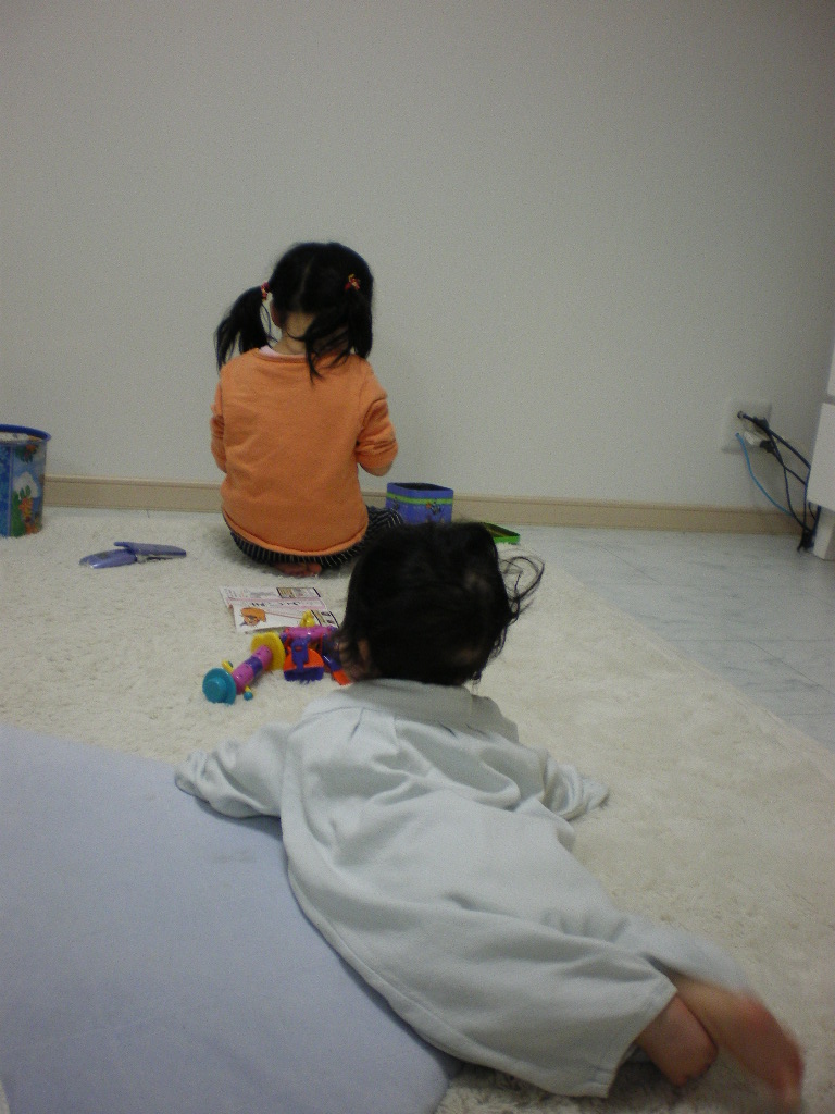 気を遣って一人部屋の片隅で遊んでいたようです。