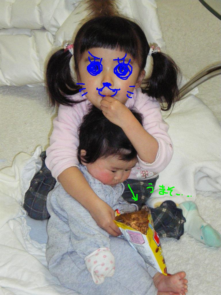こま姫が泣いてると、よっこらしょっと抱っこでお座りさせてあげて一緒にTV見たり、じゃんけんして遊んでくれたりします。