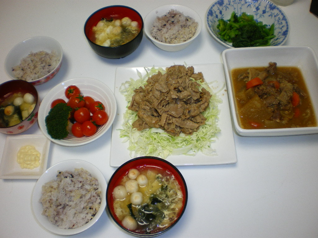 夜は豚のしょうが焼きやらどて煮やらでした。