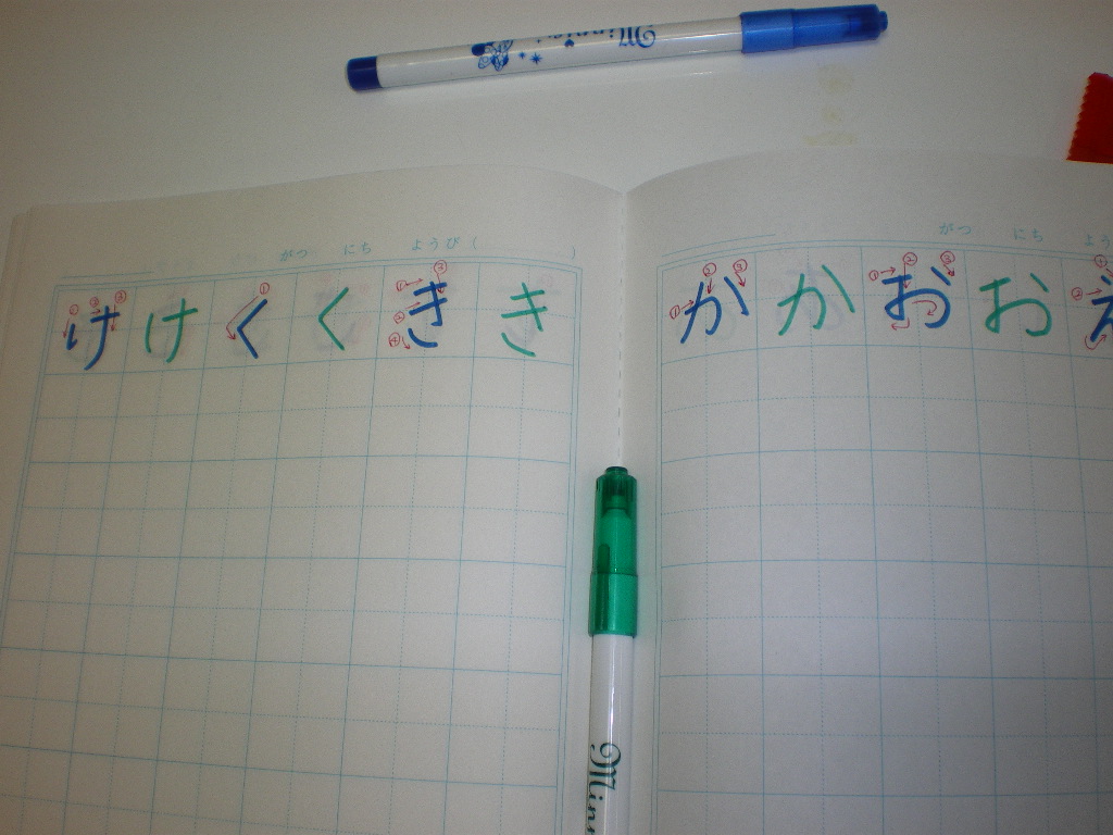今までは自由帳に好き勝手書いてたけど、ちょっとずつお勉強チックに。
