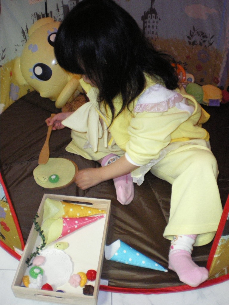 さっそく、テントの中でクレープ屋さんごっこ。