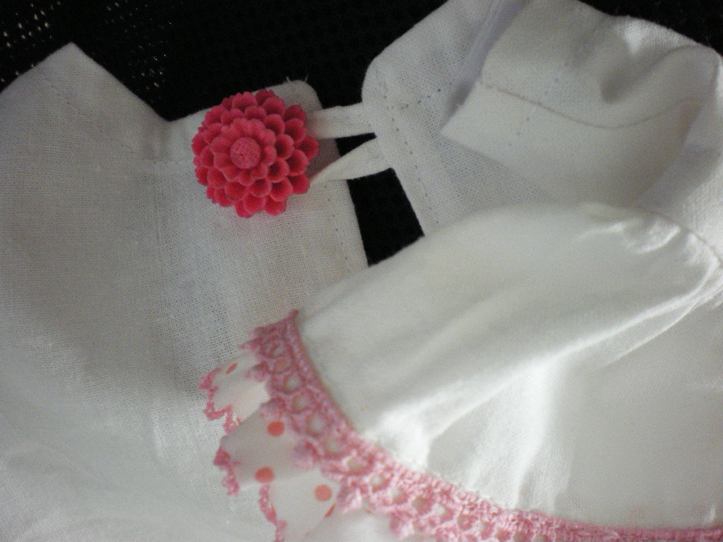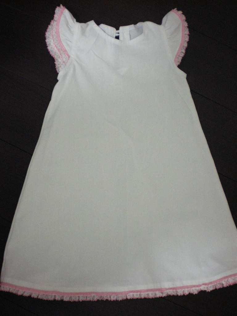 ちょっと凝って、袖と裾にレースを2種類つけてみました。