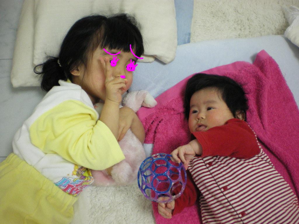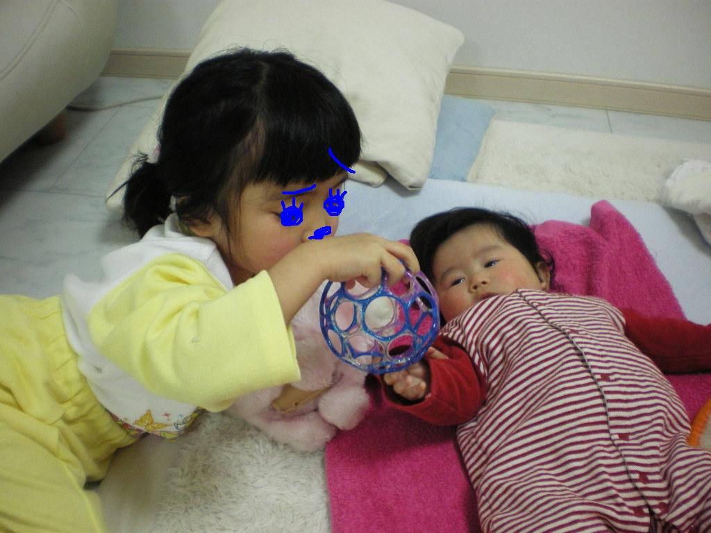 よく、親が見てないときに下の子が泣き出したりして、実は上の子がちょっといじめてた、なんて聞くんで、ちょっと目を離した後は注意してみてるんですが、