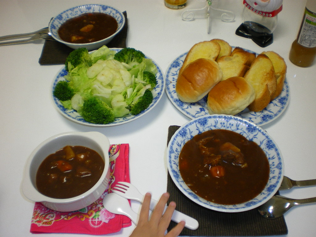 ビーフシチューとガーリックトースト。