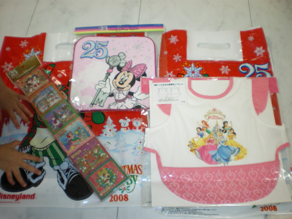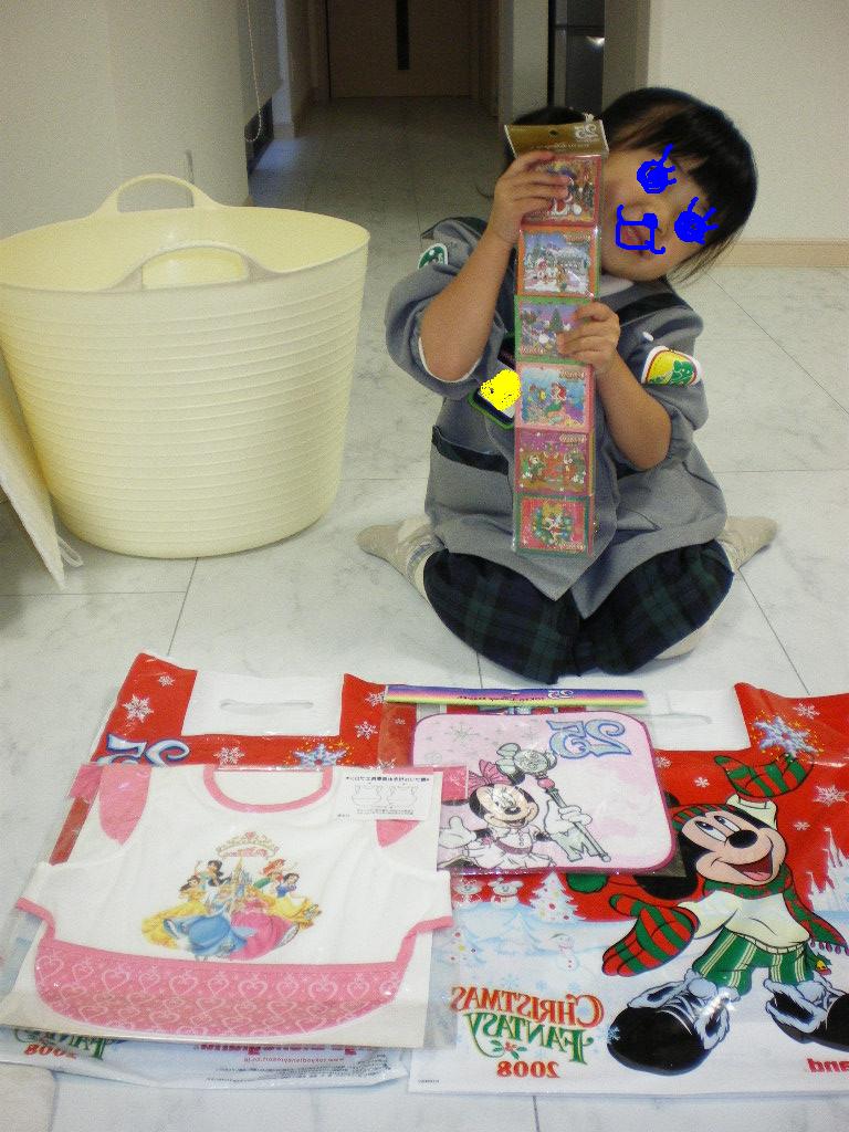 大好きなミニーちゃんのハンカチとメモ帳に大喜びのちび姫です。