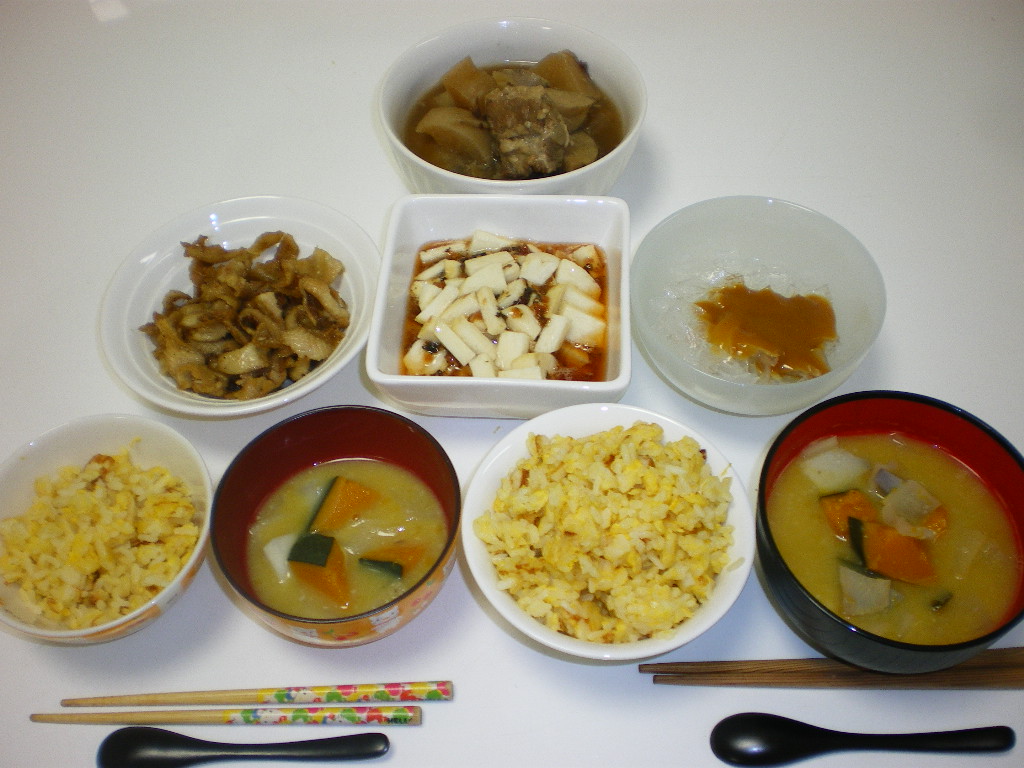 チャーハンやら鶏皮やら長芋やら寒天やら軟骨煮やら。