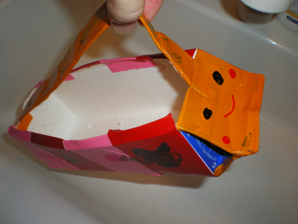 牛乳パックで作った水遊び用のおもちゃらしい。