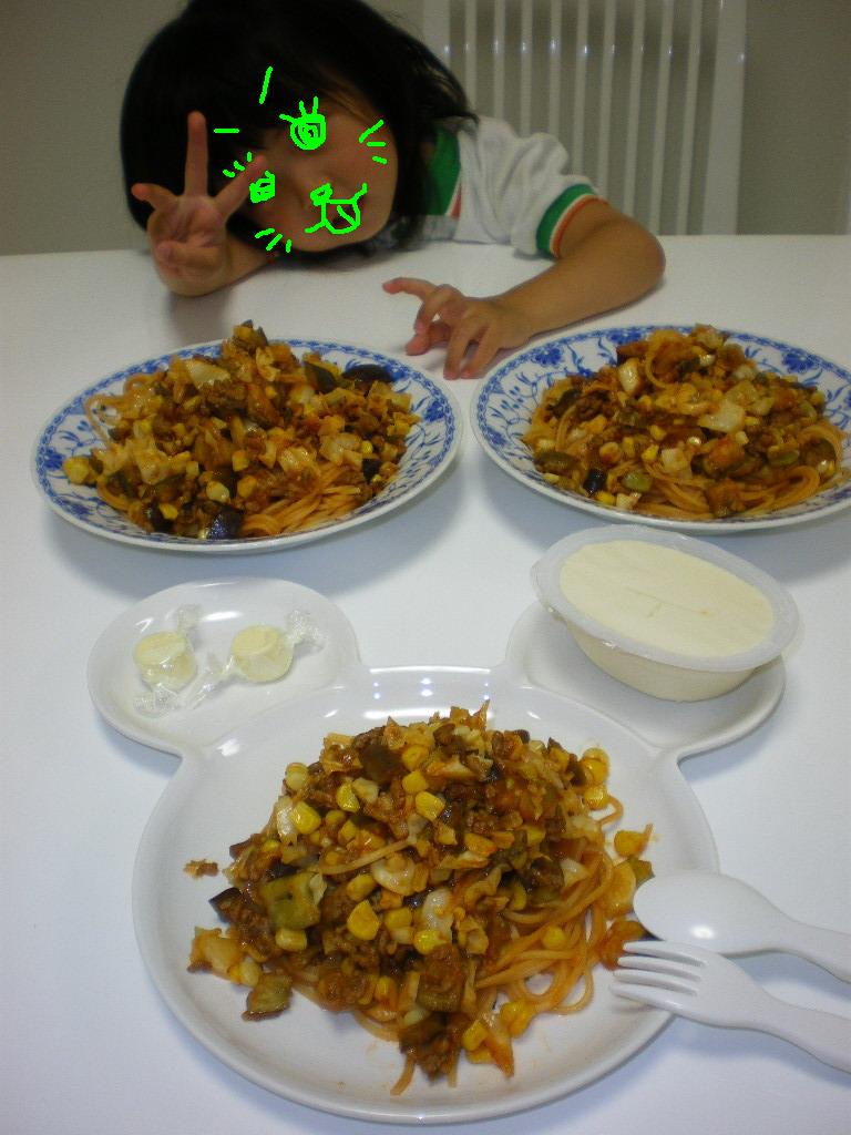 夕飯は、ちび姫の好きなお肉と野菜たっぷりのパスタでした^^