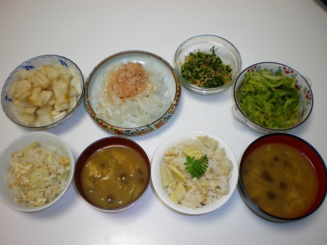 オトンが持って来てくれたタケノコで、タケノコご飯。ナメコのお味噌汁。などなど、マクロビチックにて簡単に済ませました。