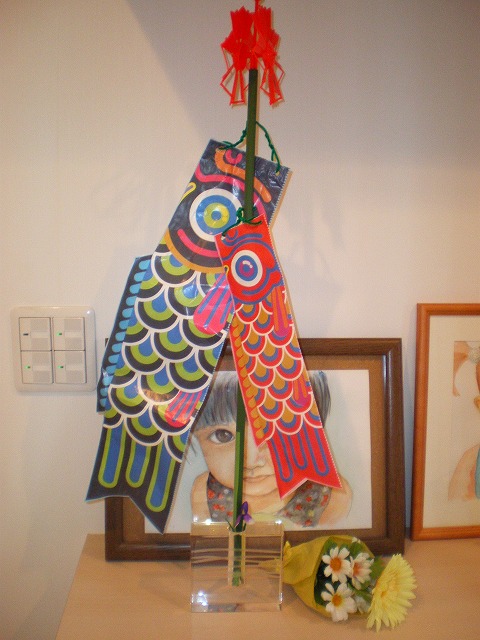 ちび姫が、園でこいのぼりを作って持って帰ってきたので、玄関に飾ってみました^^