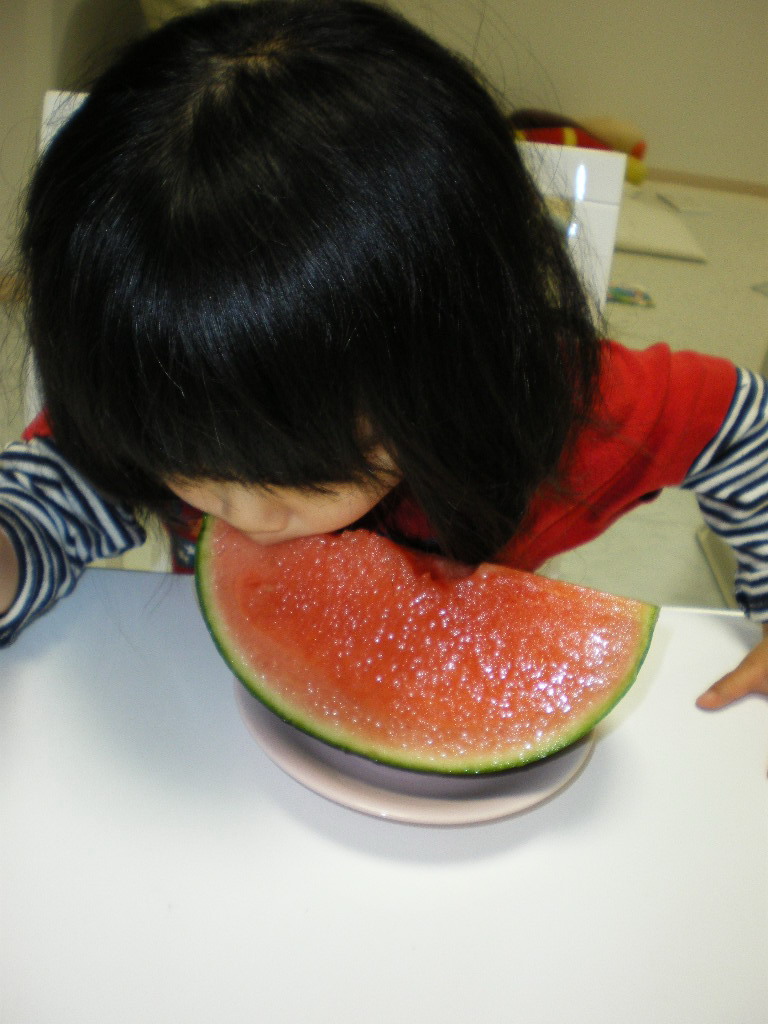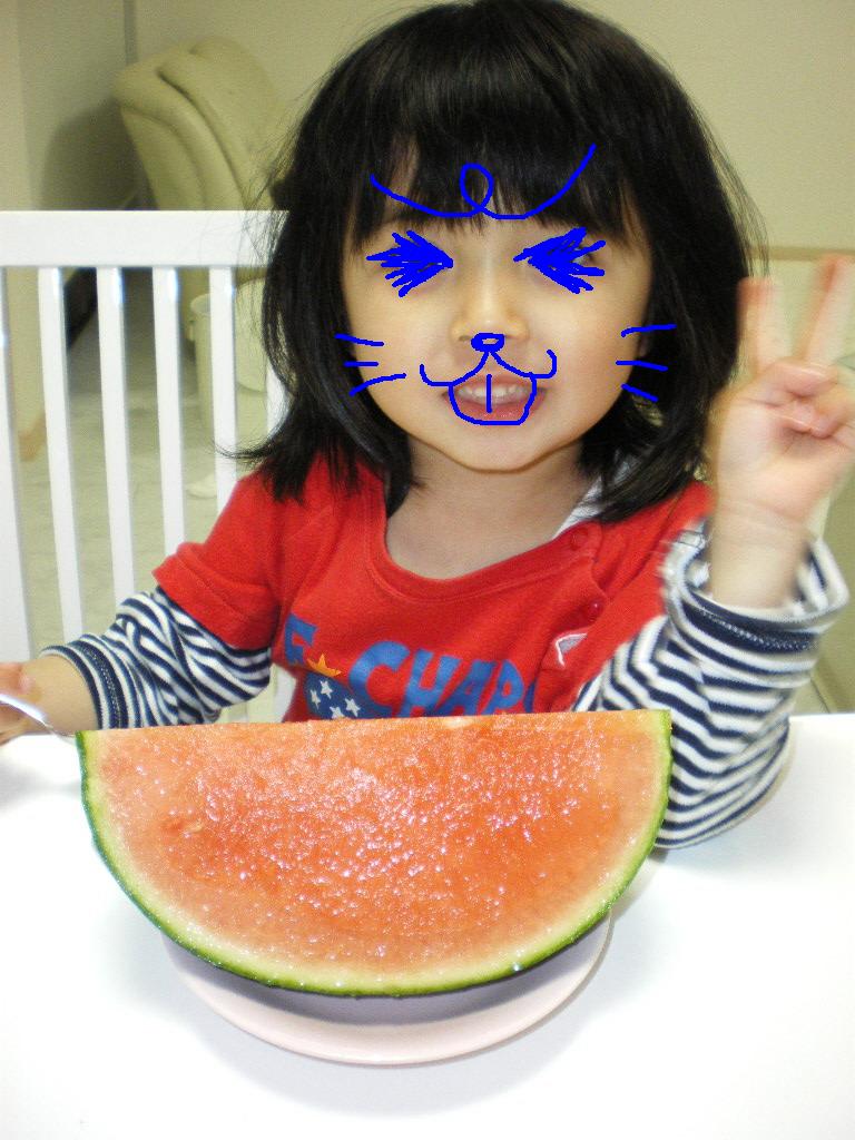 あと、スイカが食べたい!!とちび姫が言うので、小玉スイカを1個買ってきてみました。