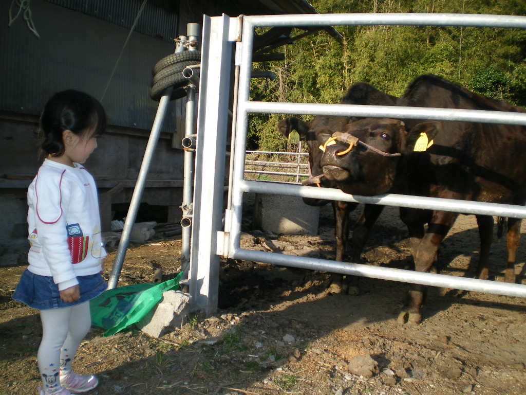 上隣のお家で肉牛を飼育しているので、毎日少し山を登って牛達を見せてもらいに行ったり。