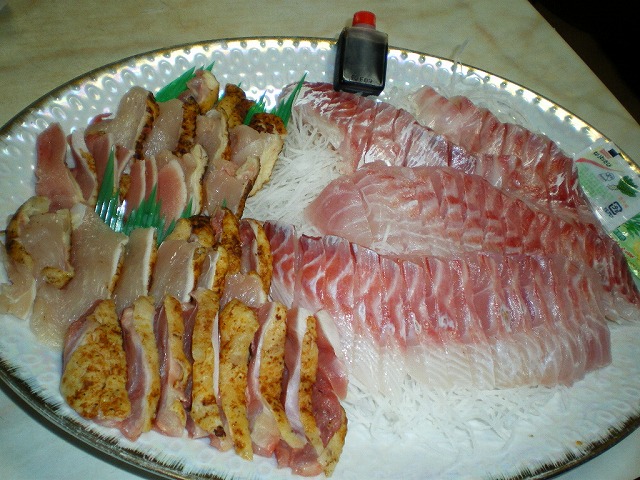 鯛と地鶏の刺身。