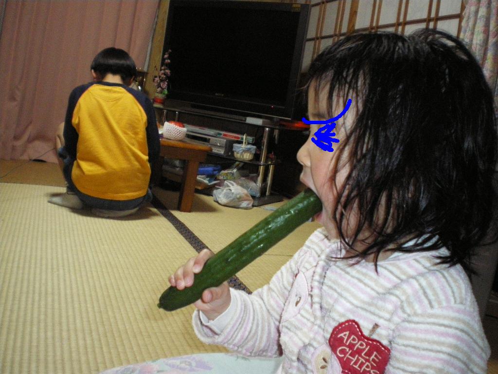 家でも、メイちゃん風に、丸かじり。