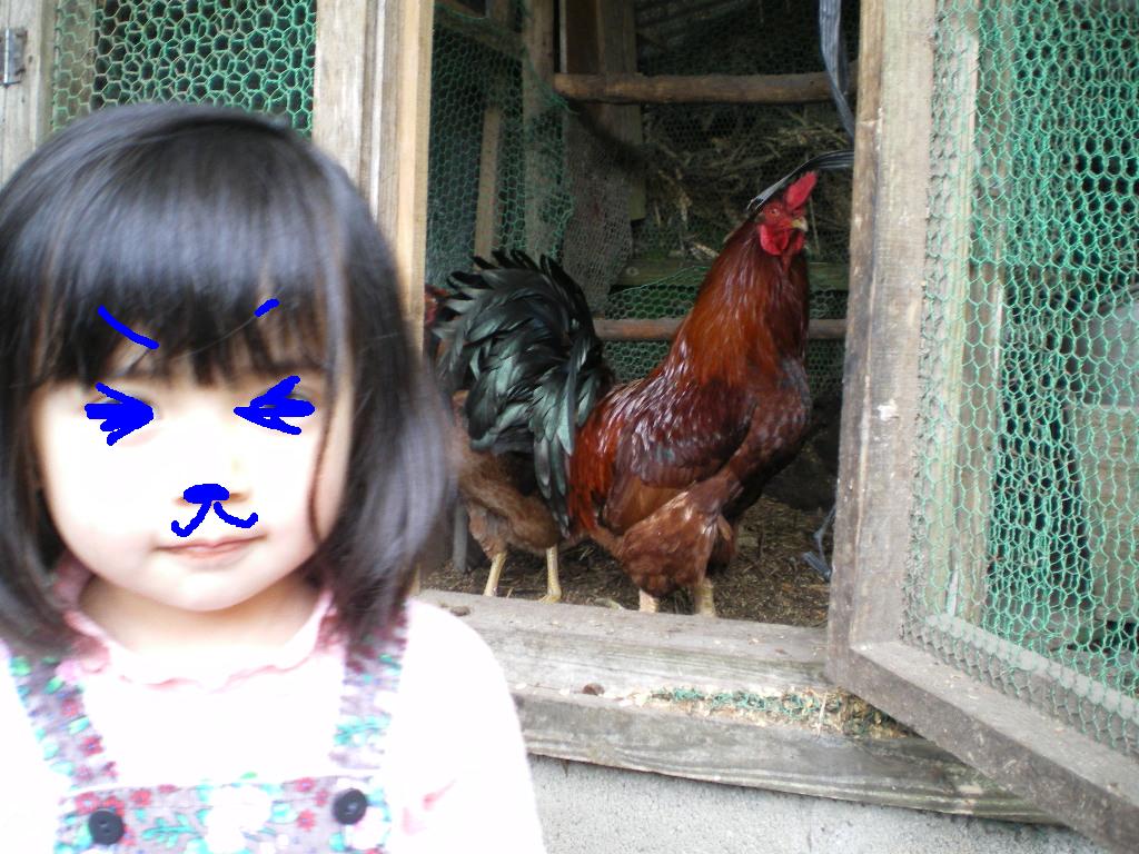 3軒隣のおじさんちに、鶏を見に行ったりも。