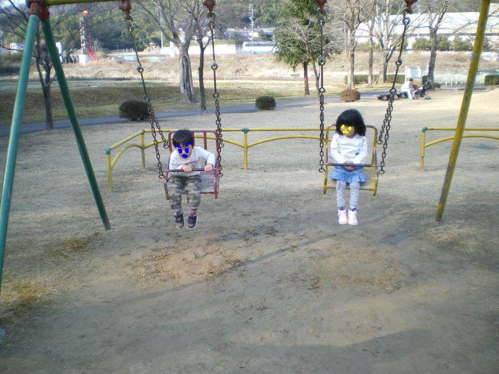 仲良くブランコ。