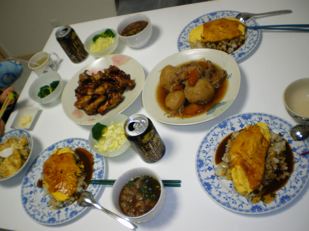 旦那ちゃんの会社の男性が飲みがてら遊びに来てくれたので、皆でオムライスでした。