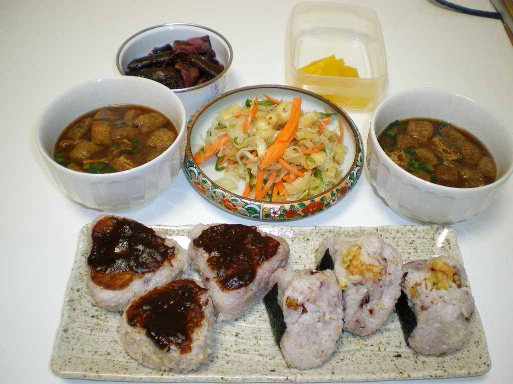前日の残りの、磯部揚げでの天むすですが、いけるお味でした。