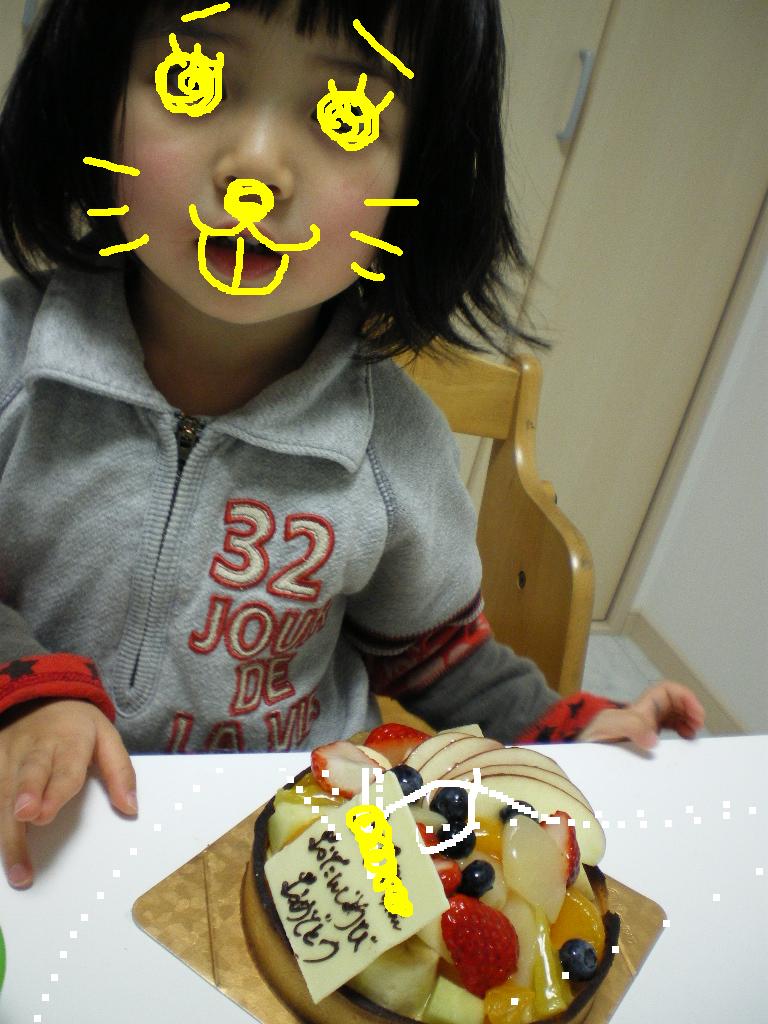 大きなお誕生ケーキを買ってあげたいけれど、ちび姫もパパもそんなに沢山はケーキを食べないし、私も今回は食べれそうもないので、小さいホールケーキにしました。
