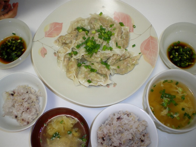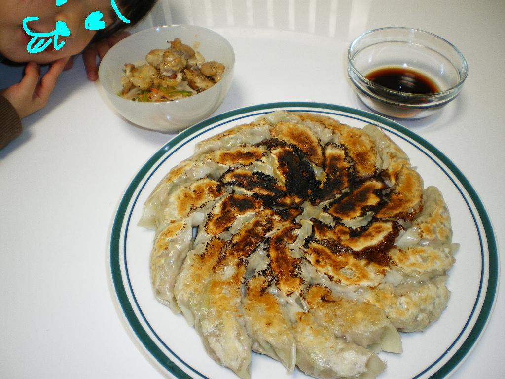 夕飯は、夜帰りの遅い旦那ちゃん用の焼き餃子にしました。