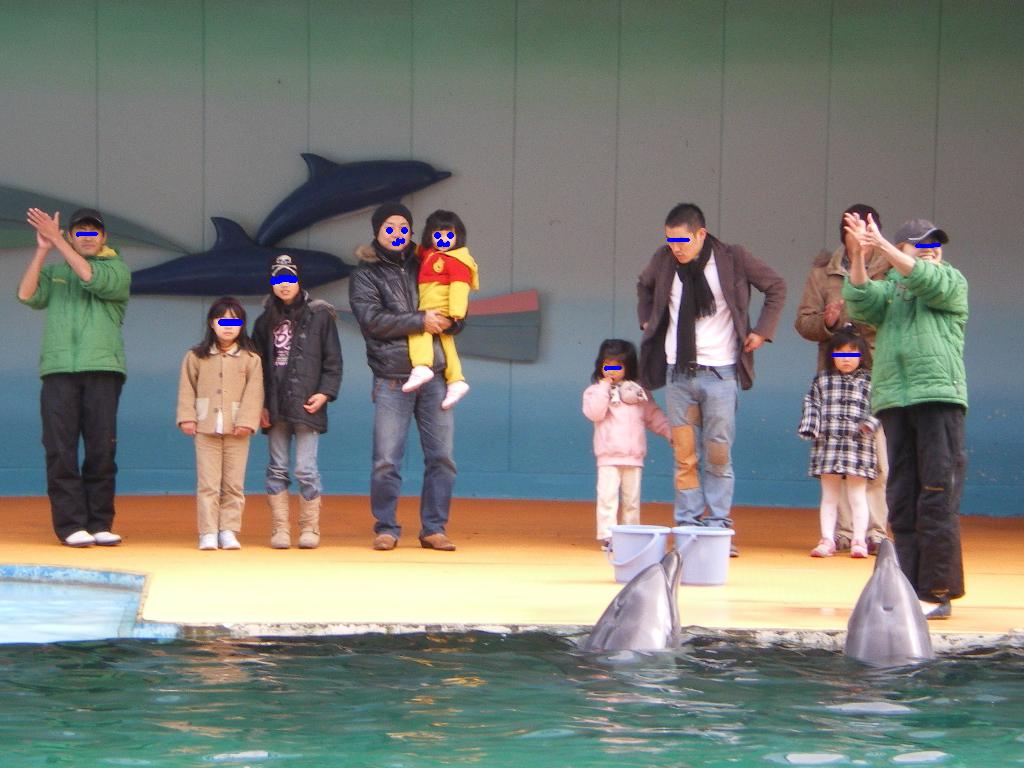 うちのムスメは、目立ちたがりなので、怖がることも恥ずかしがる事もなく、ステージでイルカを大いに楽しみ、あげく、余裕で観客席のママとババちゃんに手を振っておりました。