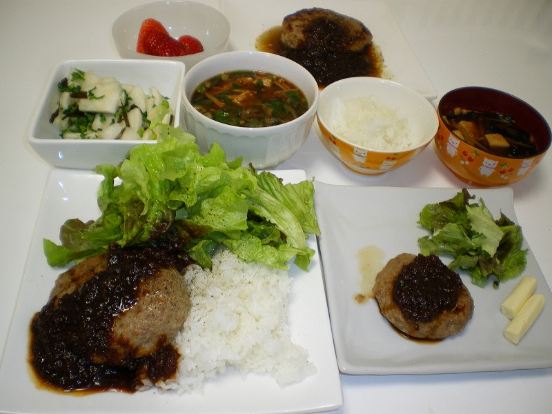 夕飯はハンバーグ。