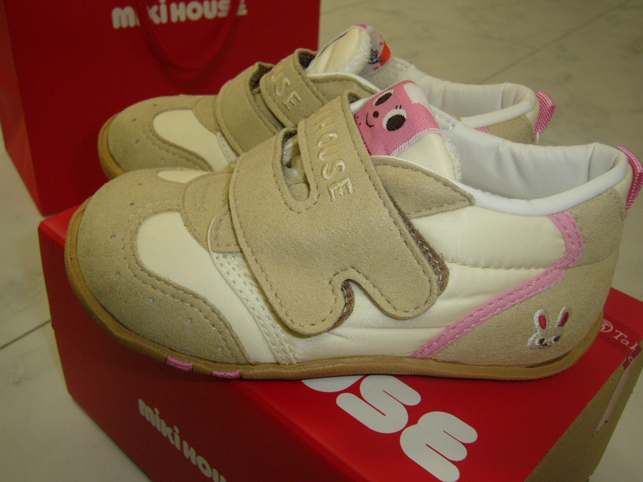 メインで今まで履いてきたのは、ミキハウスのウサギちゃんが付いたピンクのかわいらしい靴。