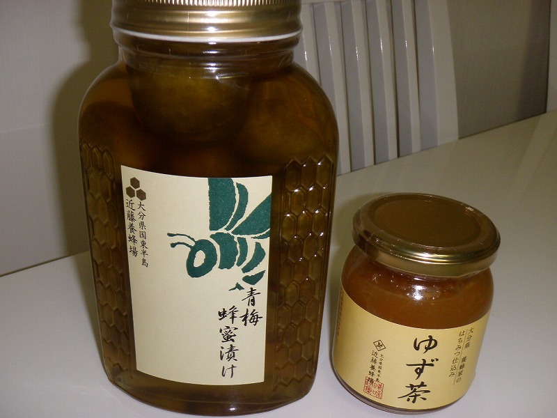 オカンが差し入れ~と、ノドに優しい柚子と梅のはちみつ漬けをくれました。
