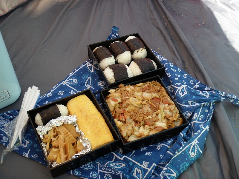 お弁当はテキトーですが、海で食べると美味しいねっ♪とご機嫌なちび姫。