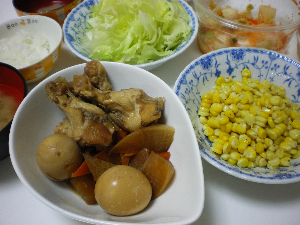 鶏手羽元の煮込みと、理香さんに頂いたとうきびのコーンバターでした。
