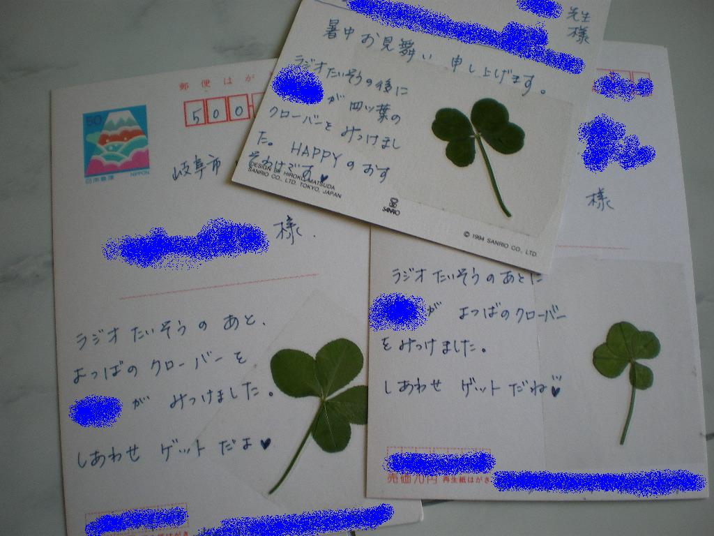 ラジオ体操の後にちび姫が見つけた四葉のクローバーを押し花にしておいたので、