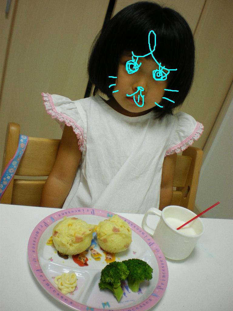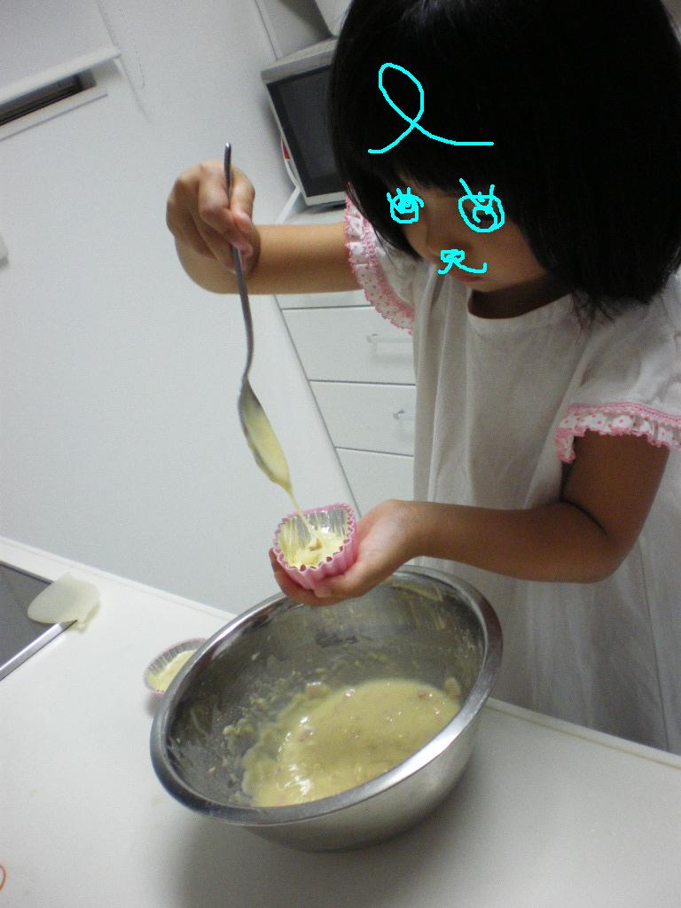 さて、メロンと比べるとしょぼしょぼですが、ちび姫が蒸しパンを作りました。