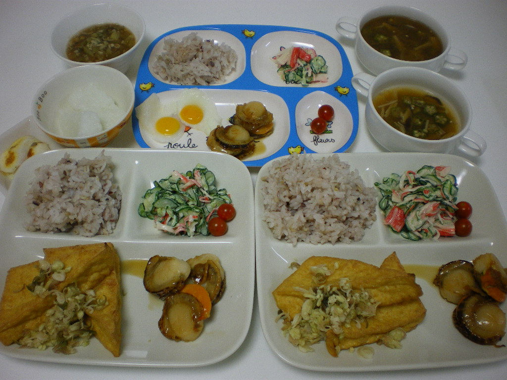 ホタテやら厚揚げやら、中学生男子なら「肉食わせろっ!」と怒りそうなメニューでした。