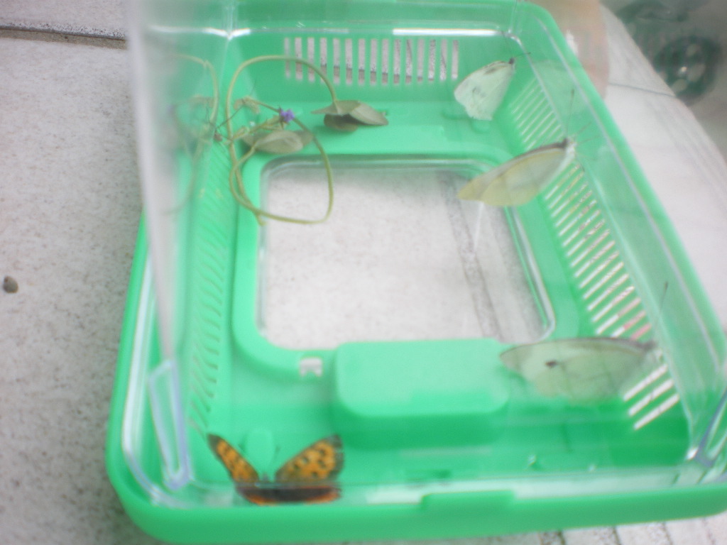 モンシロチョウ×3と蛾が捕れました。