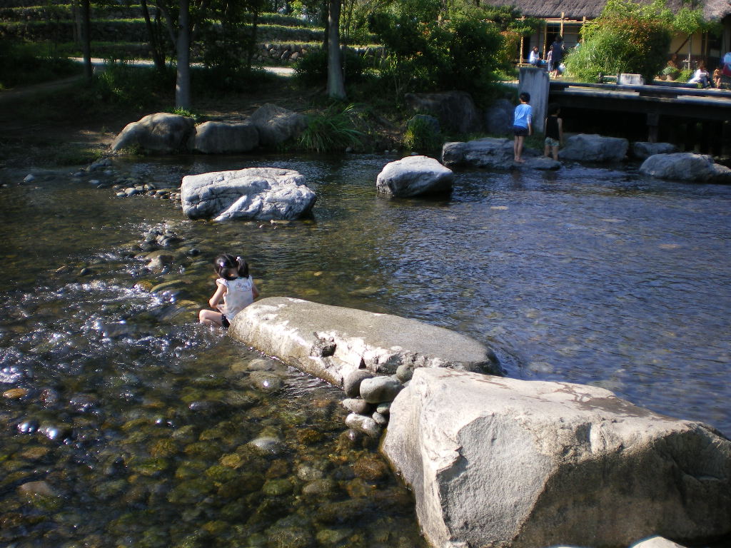 水場で遊ぶ。