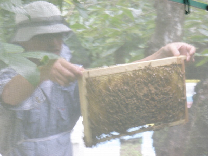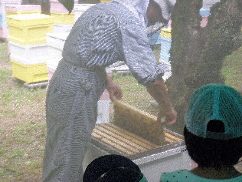 ハチミツおじさんが、巣箱から取り出すと